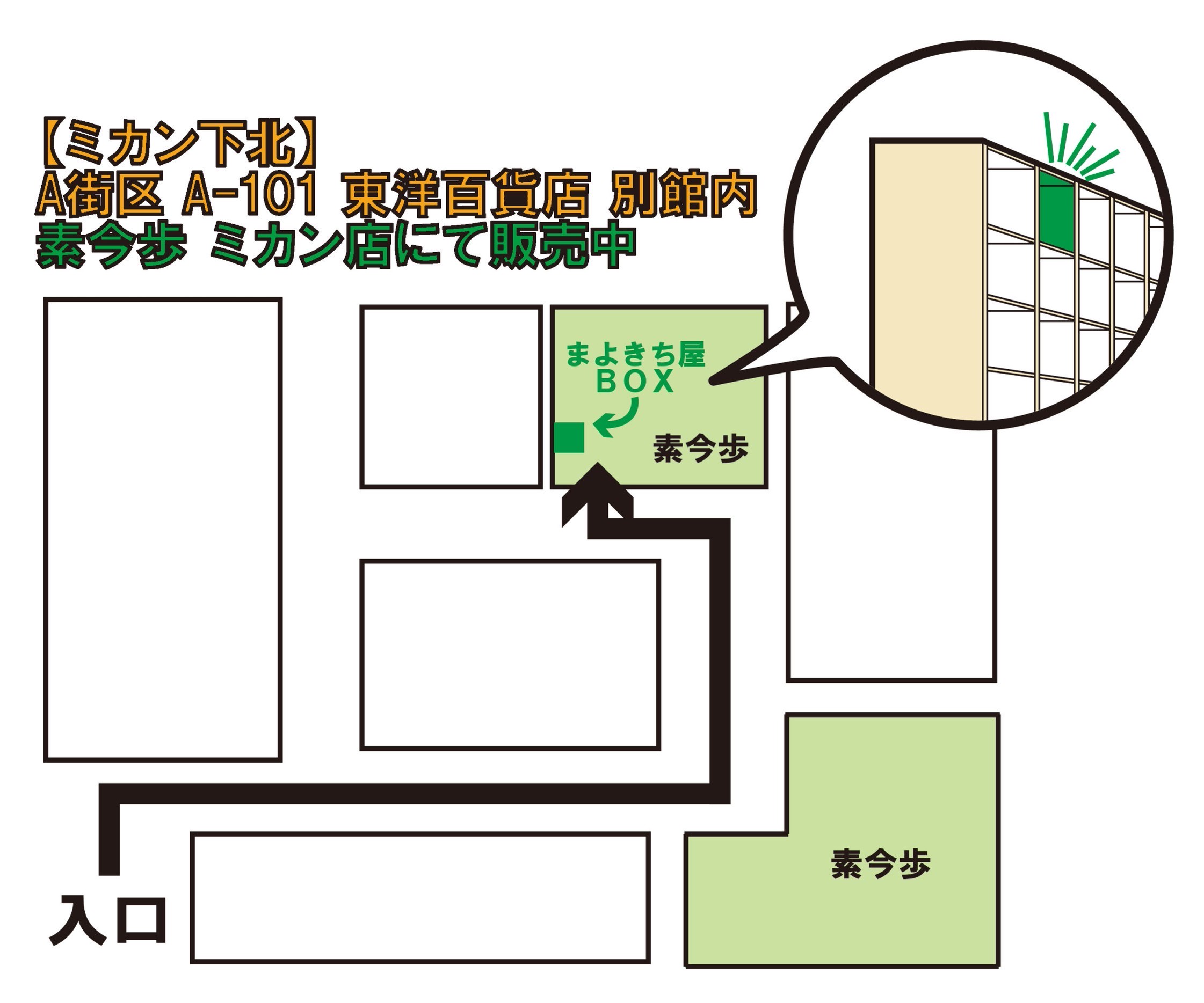 下記店内マップの位置にまよきち屋のスペースがございます。